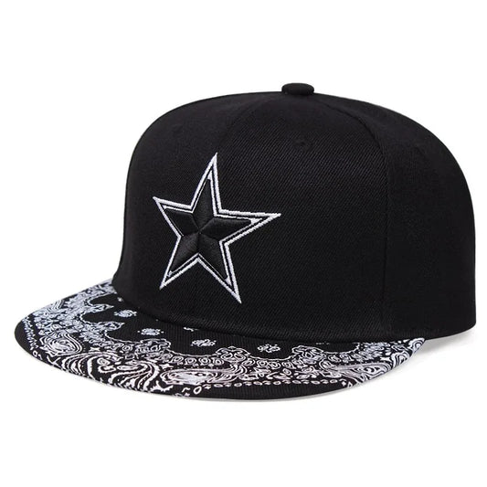 3D Star Embroidered Flat Brim Baseball Cap