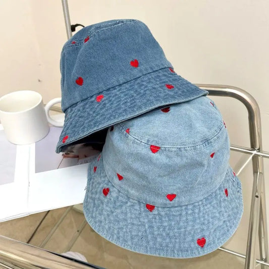 Women’s Embroidered Heart Denim Bucket Hat