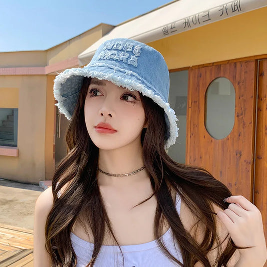 Women’s Vintage Denim Raw-edged Bucket Hat