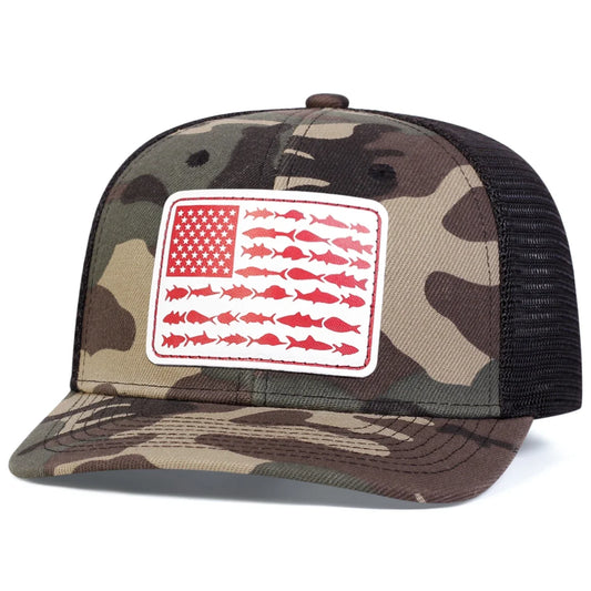 Unisex White Flag Little Fish Leather Label Baseball Net Caps