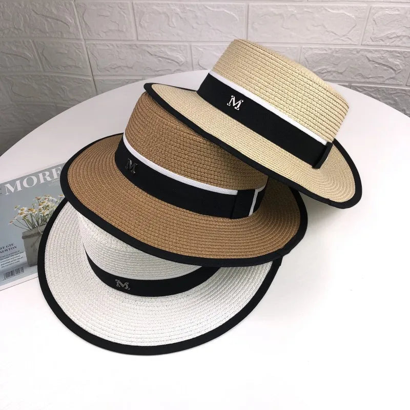 Women Flat Top Straw Sun Hat