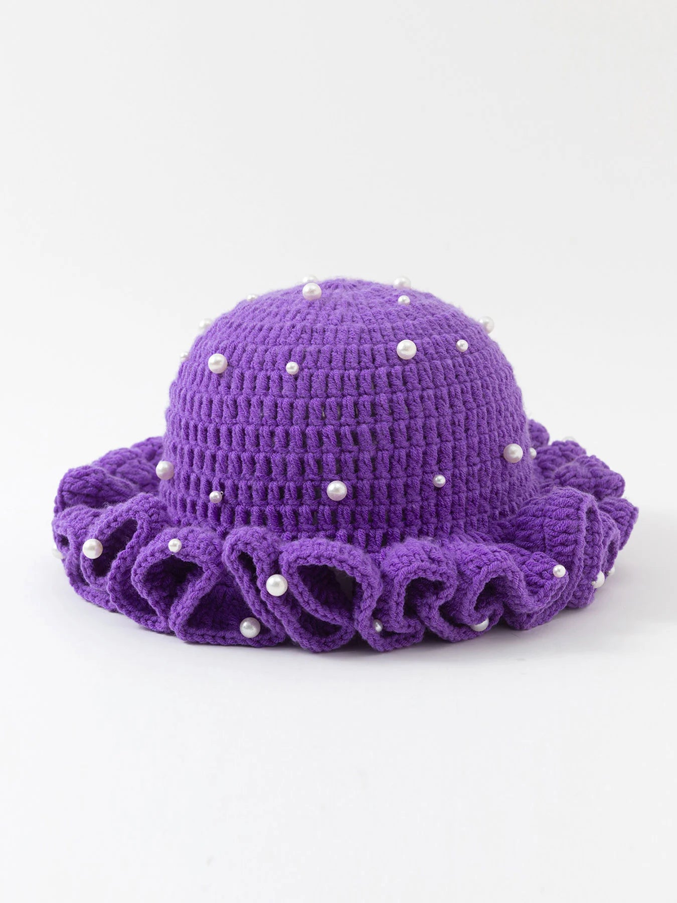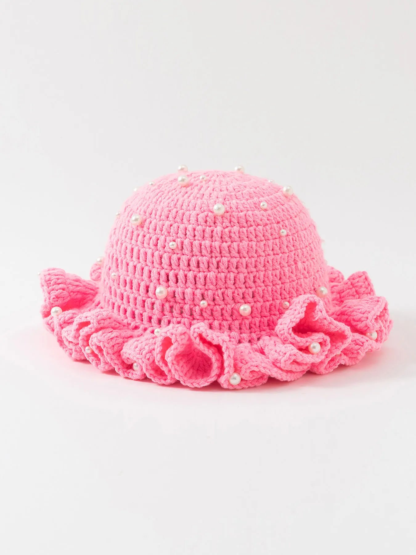 Women’s Pearl Ruffled Crochet Knit Bucket Hat